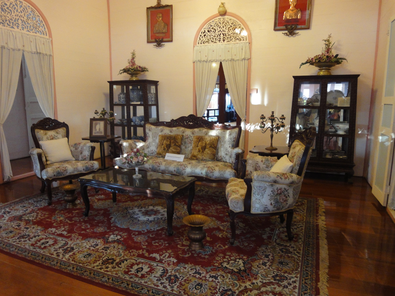 Le temple WAT PHUMIN : L'intérieur est remarquable. l'autel, très décoré au centre du temple, est doté de 4 côtés (suivant le thème cruciforme), chacun avec un bouddha surmonté d'une fleur de lotus. Le toit est supporté par 12 piliers de teck, décorés d'or sur de la laque noire et rouge, et motifs d'éléphants. Le plafond est finement décoré et les peintures murales intérieures méritent une grande attention.